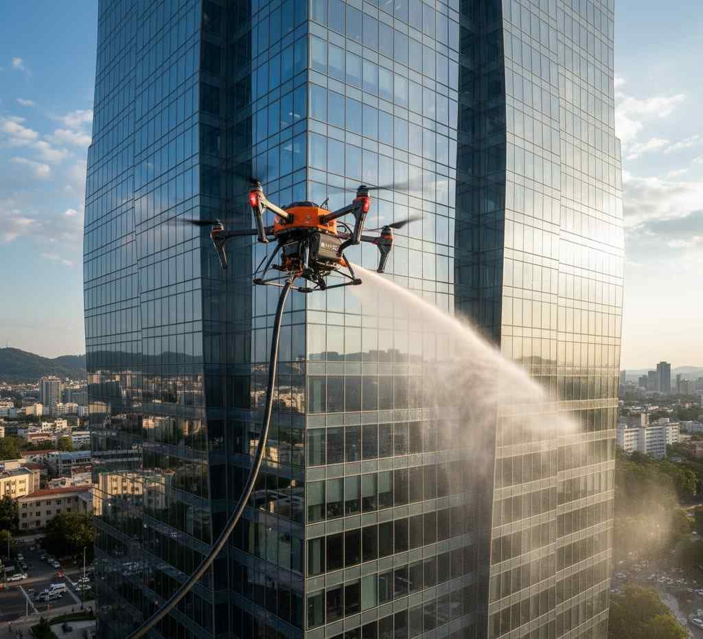 Yüksek binalar ve modern mimariler için devrim niteliğinde bir çözüm olan drone ile dış cephe temizliği, güvenlik, hız ve verimliliği bir araya getirir. Özel olarak tasarlanmış endüstriyel dronelar, cephe malzemesine uygun, çevre dostu solüsyonları ayarlanabilir basınçla püskürterek en zorlu kirleri bile etkili bir şekilde temizler.