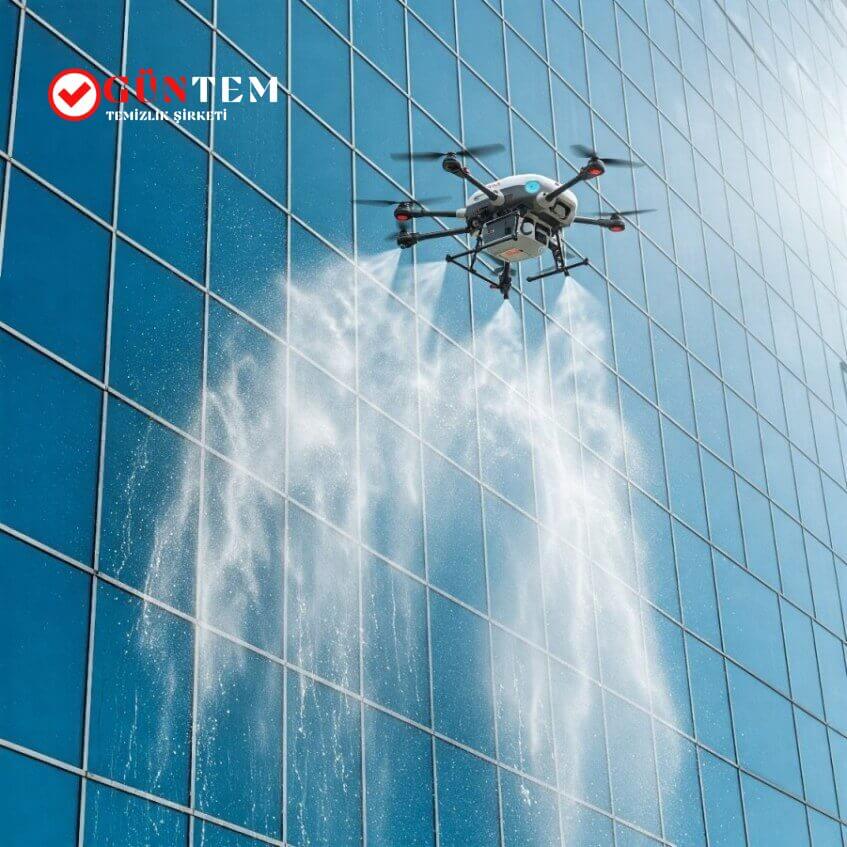 Cam temizleyen drone, yüksek binaların cam yüzeylerini temizlemek amacıyla özel olarak tasarlanan insansız hava araçlarıdır. Bu dronlar, su ve temizlik kimyasallarını taşıyan tanklara, fırçalara veya püskürtme sistemlerine sahiptir. Geleneksel dış cephe temizliği yöntemlerinde olduğu gibi tehlikeli iskele sistemleri ya da dağcı personel gerektirmez.