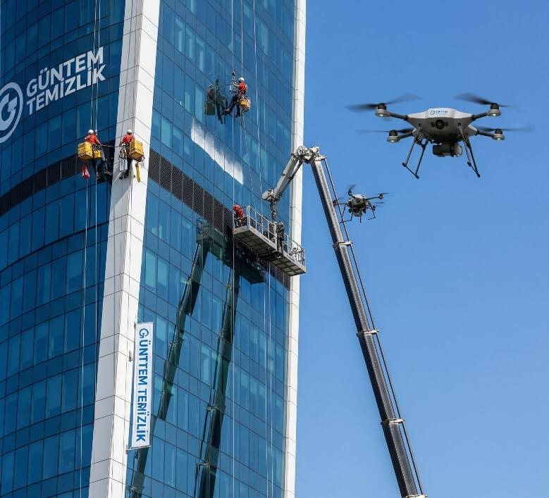 Güntem Temizlik olarak, iple erişim ekiplerimizin tamamı sertifikalıdır ve en katı iş güvenliği protokollerine göre çalışır.