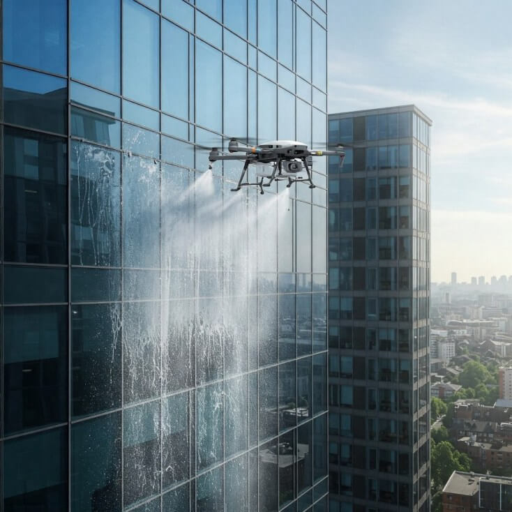 Drone ile dış cephe temizliği, özel olarak tasarlanmış, yüksek basınçlı su, temizlik solüsyonları veya diğer temizlik ekipmanlarını taşıyabilen insansız hava araçları (drone) kullanılarak binaların dış yüzeylerinin temizlenmesi işlemidir. Bu yöntem, ulaşılması zor veya tehlikeli alanların temizliğinde geleneksel yöntemlere kıyasla devrim niteliğinde avantajlar sunar.