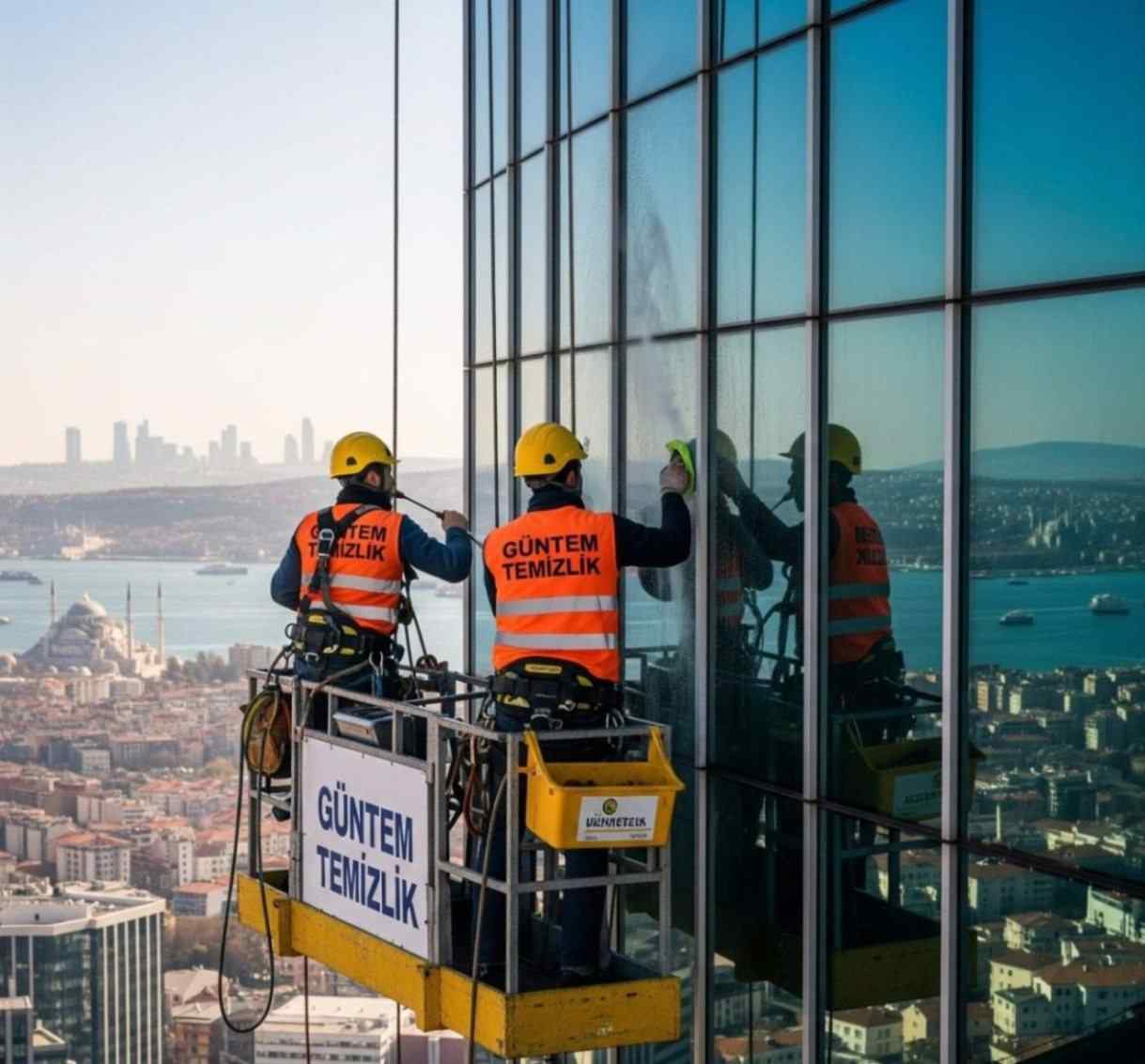 Sepetli vinç erişimi ile dış cephe temizliği hizmetleri